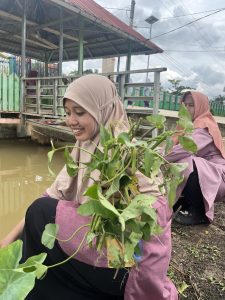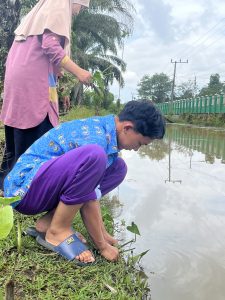 Melalui praktik langsung penanaman kangkung air dengan pendampingan pembina.