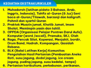 Kegiatan Ekstra Kurikuler bagi para Santri / Sanreiwati yang tersedia antaralain :